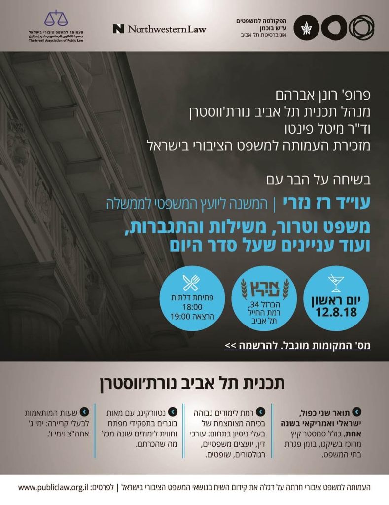 תכנית תל אביב-נורת'ווסטרן והעמותה למשפט ציבורי בישראל שמחו להזמינכם לאירוע נוסף במסגרת סדרת ההרצאות משפטים על הבר.