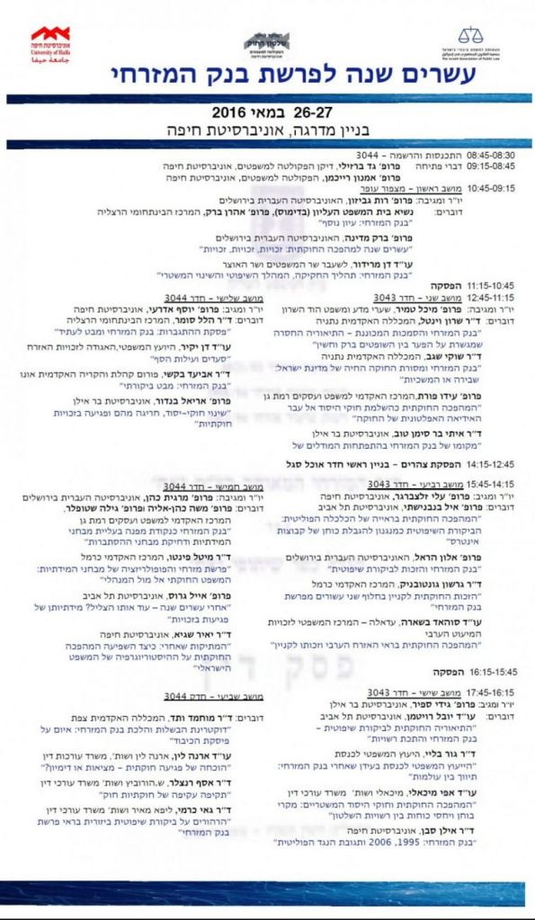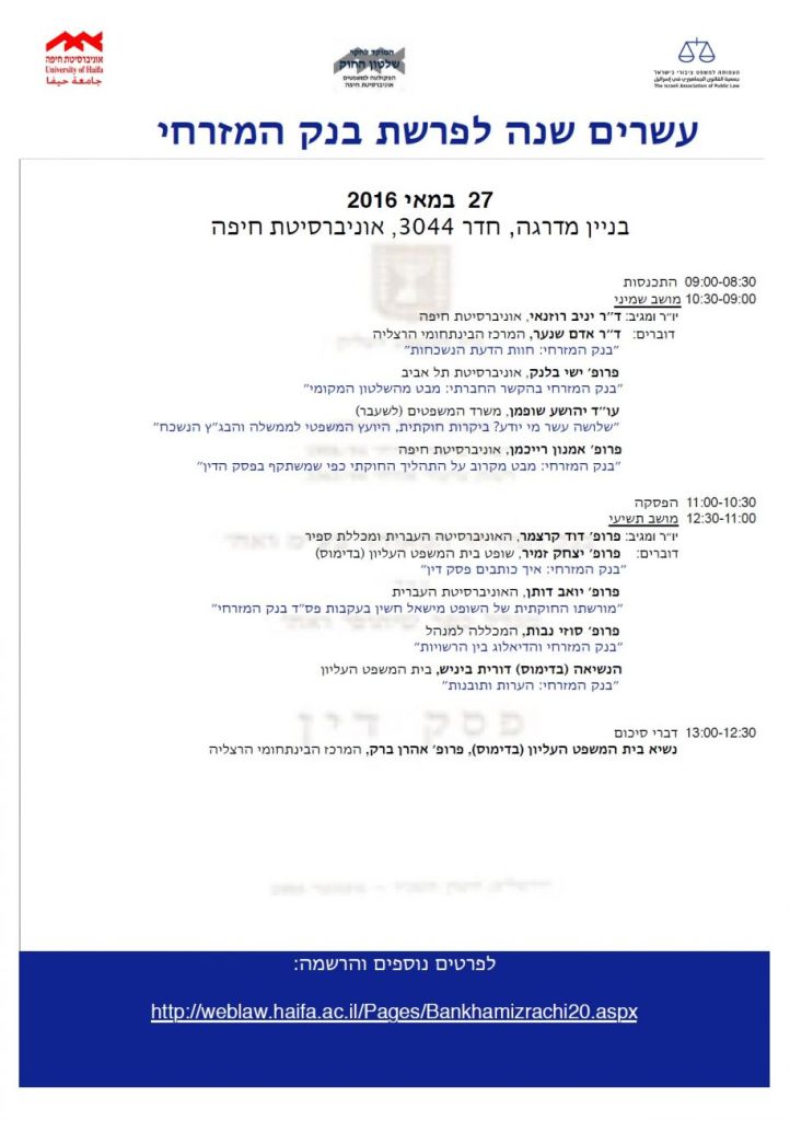 בימים חמישי-שישי 26-27/5/2016, התקיים באוניברסיטת חיפה כנס בנושא "עשרים שנה לפרשת בנק המזרחי", בארגון משותף של הפקולטה למשפטים והמוקד לחקר שלטון החוק באוניברסיטת חיפה, והעמותה למשפט ציבורי בישראל. בכנס השתתפו מיטב החוקרים בתחומי המשפט הציבורי בישראל.