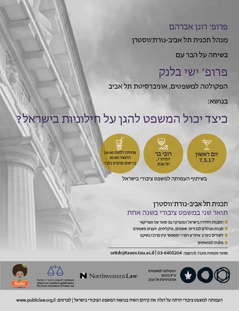 ביום ראשון, ה-07.05.2017 התקיים המפגש החמישי בסדרת "משפט ציבורי על הבר", בו הרצה פרופ' ישי בלנק בנושא "כיצד יכול המשפט להגן על חילוניות בישראל?"